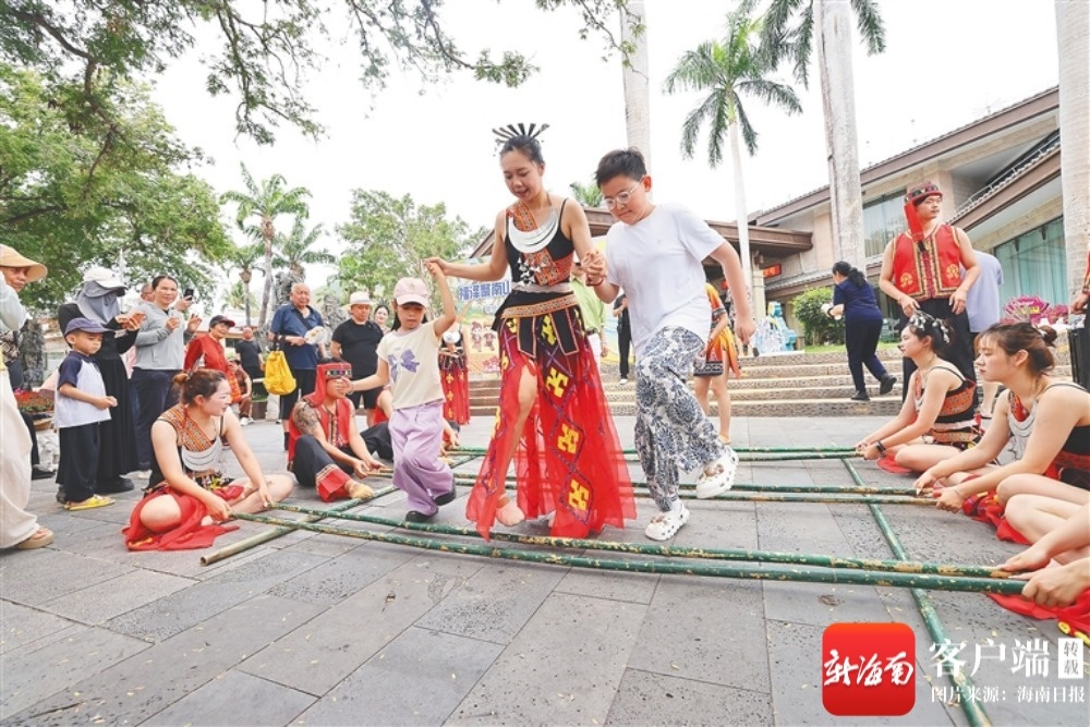 在三亚丝路欢乐世界,首届“丝路杯”竹竿舞大赛举行,千余名来自企业、民俗艺术团、校园社团的参与者身着特色民族服饰同台起舞,竹竿敲击声、民族乐曲声与游客欢笑声交织,千人共跳竹竿舞的场面,尽显本土民族文化的生机与活力,也让全民同乐的民俗氛围拉满。